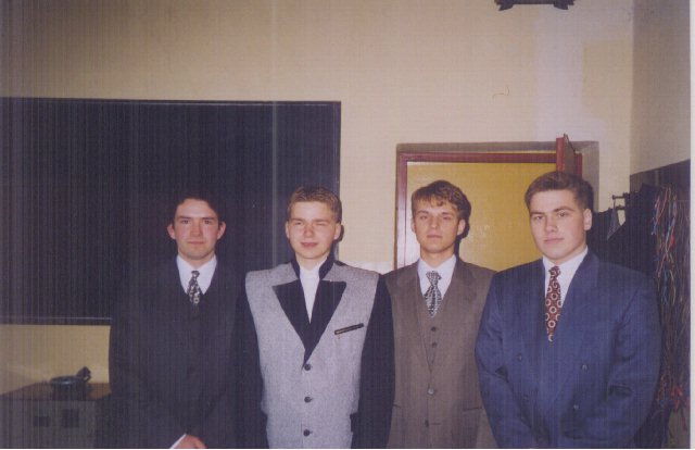 Pod koniec naszej edukacji, w kwietniu 1997 r. odbyły się obrony prac dyplomowych. Już jako technicy elektronicy dziarsko fotografowaliśmy się wśród sterowników SPS-400 wraz z kadrą nauczycielską – Wojciechem Florkowskim, Tadeuszem Kaczmarkiem oraz Janem Nowickim.