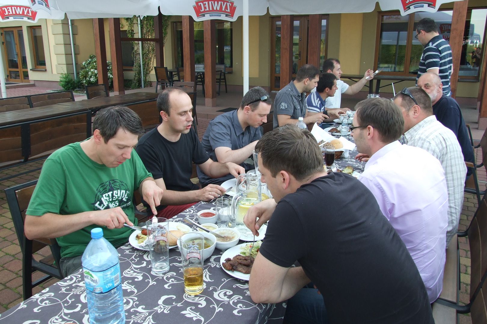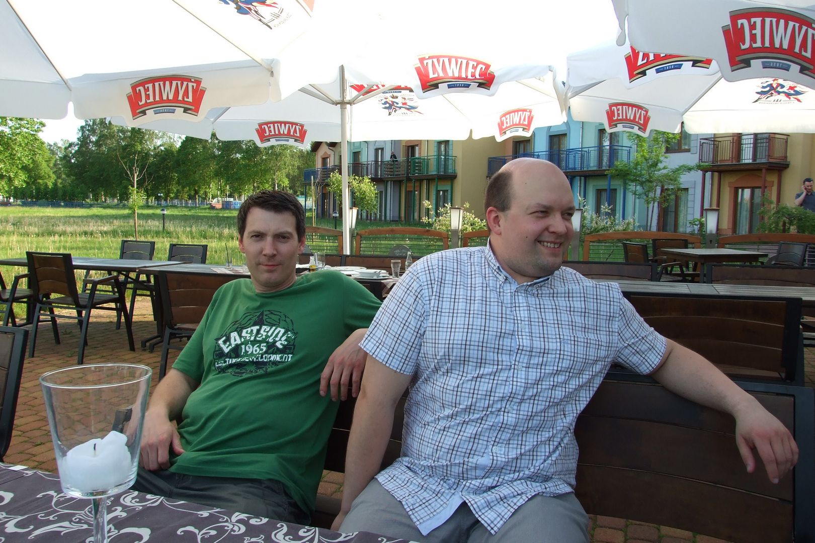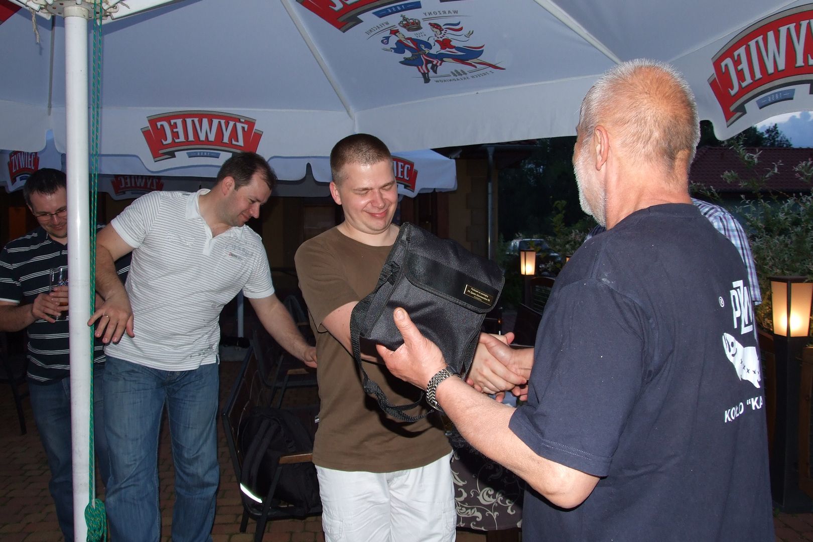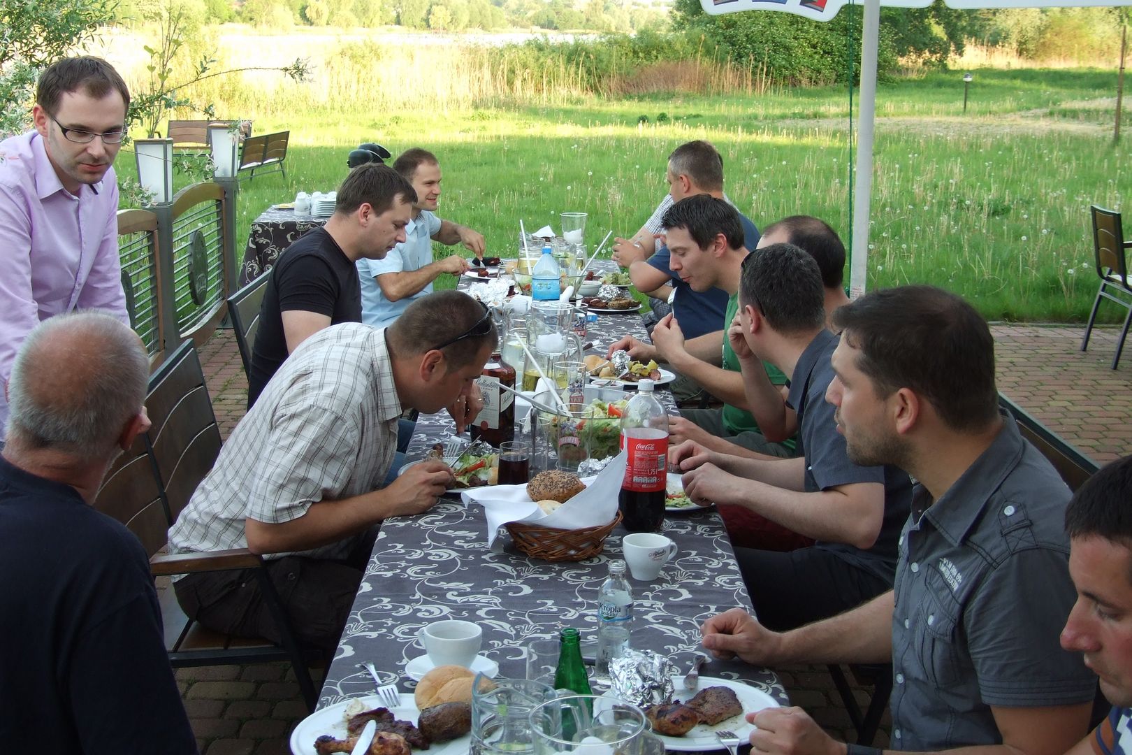 XV Zjazd Absolwentów V5 odbył się w piątek 12 maja 2012 r. W tym roku wybraliśmy nową lokalizację – Hotel Daglezja nad jeziorem Kórnickim. Na spotkaniu zjawiło się 17 osób. Była biesiada grillowa z ogniskiem. Jak co roku, na imprezie pojawiły się pyszne rogaliki wypiekane przez florkową Małżonkę. Florek otrzymał od nas w prezencie lornetkę. 5 osób przedłużyło sobie imprezę, zostając na noc w hotelu.