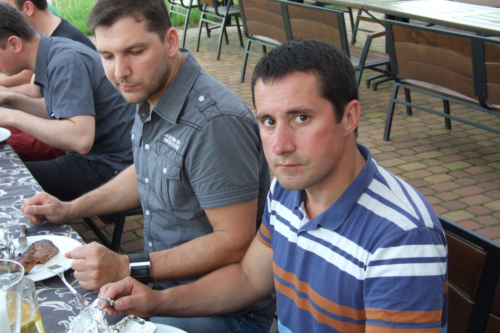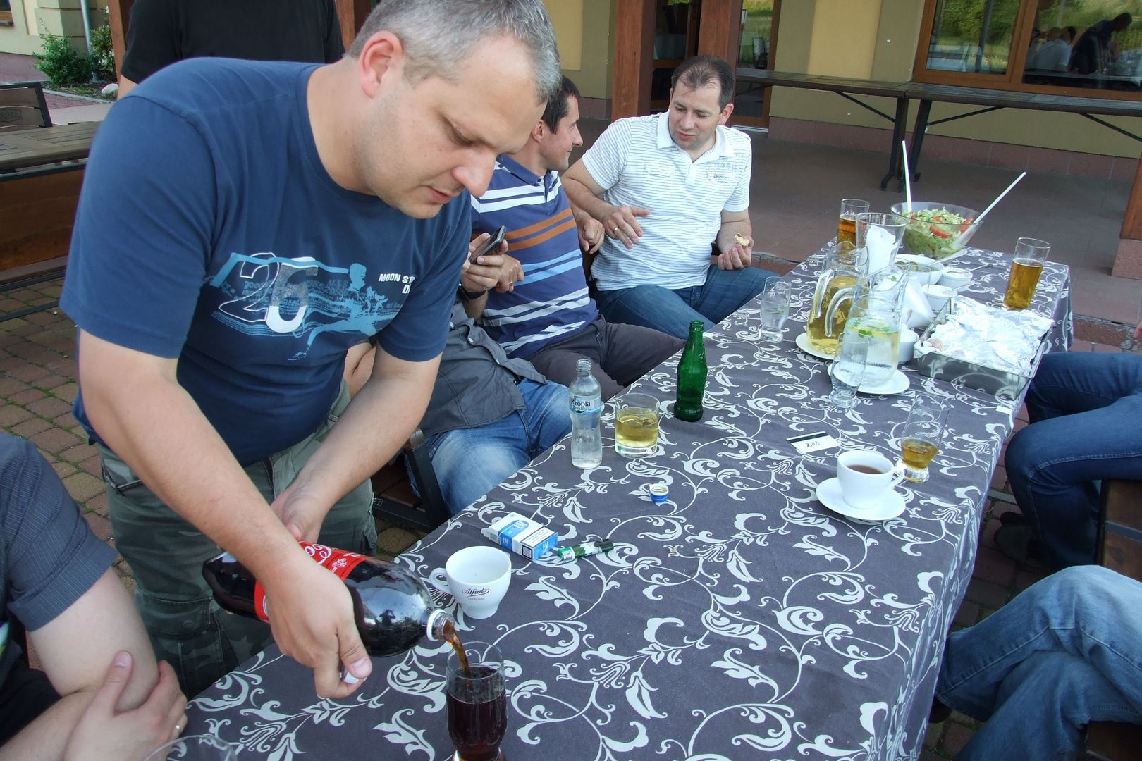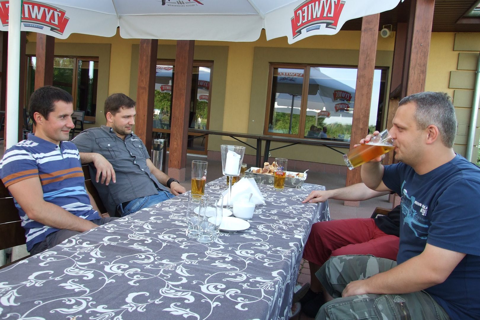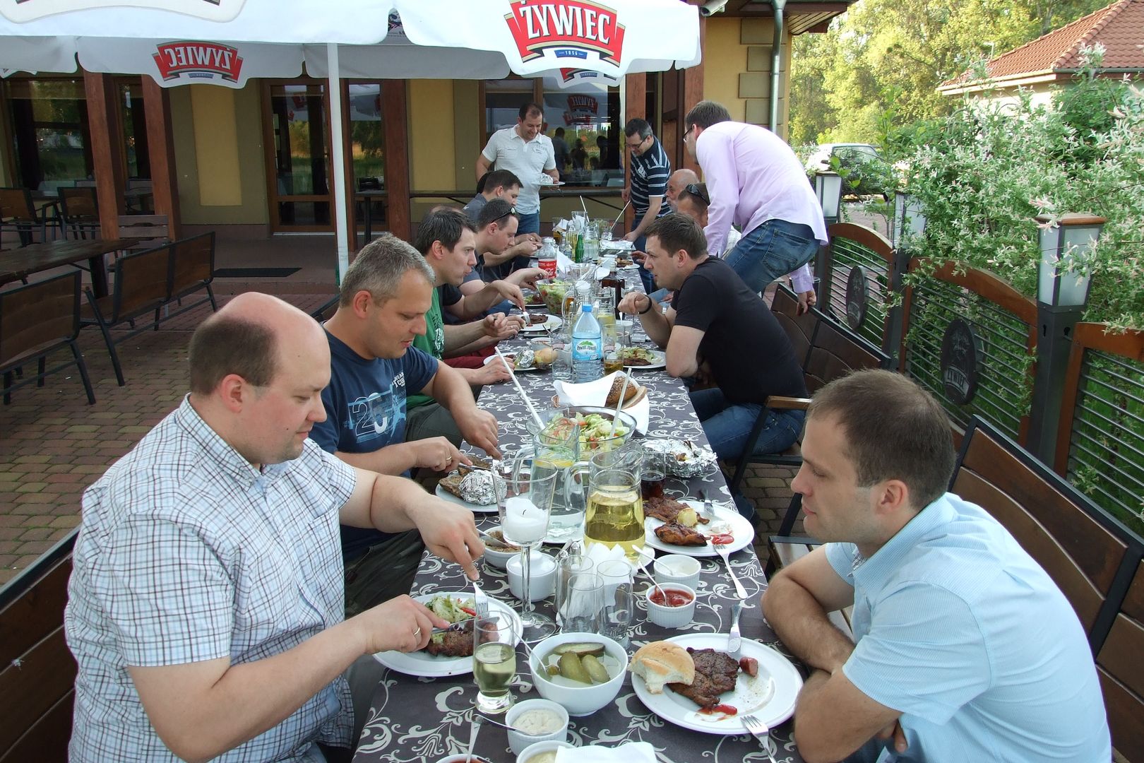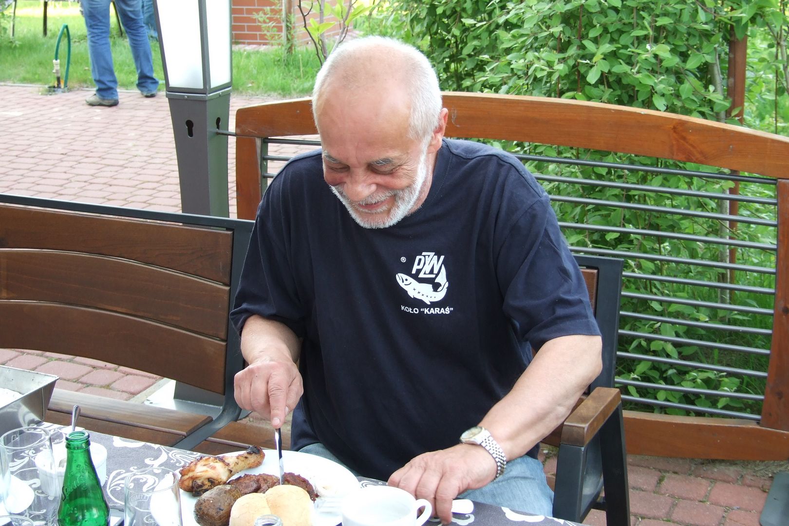 XV Zjazd Absolwentów V5 odbył się w piątek 12 maja 2012 r. W tym roku wybraliśmy nową lokalizację – Hotel Daglezja nad jeziorem Kórnickim. Na spotkaniu zjawiło się 17 osób. Była biesiada grillowa z ogniskiem. Jak co roku, na imprezie pojawiły się pyszne rogaliki wypiekane przez florkową Małżonkę. Florek otrzymał od nas w prezencie lornetkę. 5 osób przedłużyło sobie imprezę, zostając na noc w hotelu.