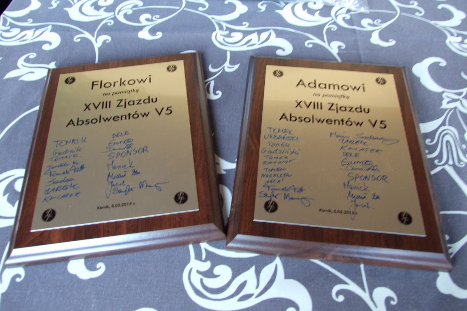 XVIII Zjazd Absolwentów V5 odbył się w piątek 8 maja 2015 r. po raz kolejny w Hotelu Daglezja nad jeziorem Kórnickim. Na spotkaniu zjawiło się 18 osób. W tym roku gościem specjalnym imprezy był nasz nauczyciel języka angielskiego z technikum – Adam Alhasi, który specjalnie na nasze spotkanie przyjechał prosto z Warszawy. Była biesiada grillowa z ogniskiem. Jak co roku, na imprezie pojawiły się pyszne rogaliki wypiekane przez florkową Małżonkę. Florek i Adam otrzymali od nas w prezencie pamiątkowe tabliczki z podpisami uczestników, a Florek dodatkowo dostał bluzę polarową z haftowanym identyfikatorem „Florek”. 5 osób przedłużyło sobie imprezę, zostając na noc w hotelu.
