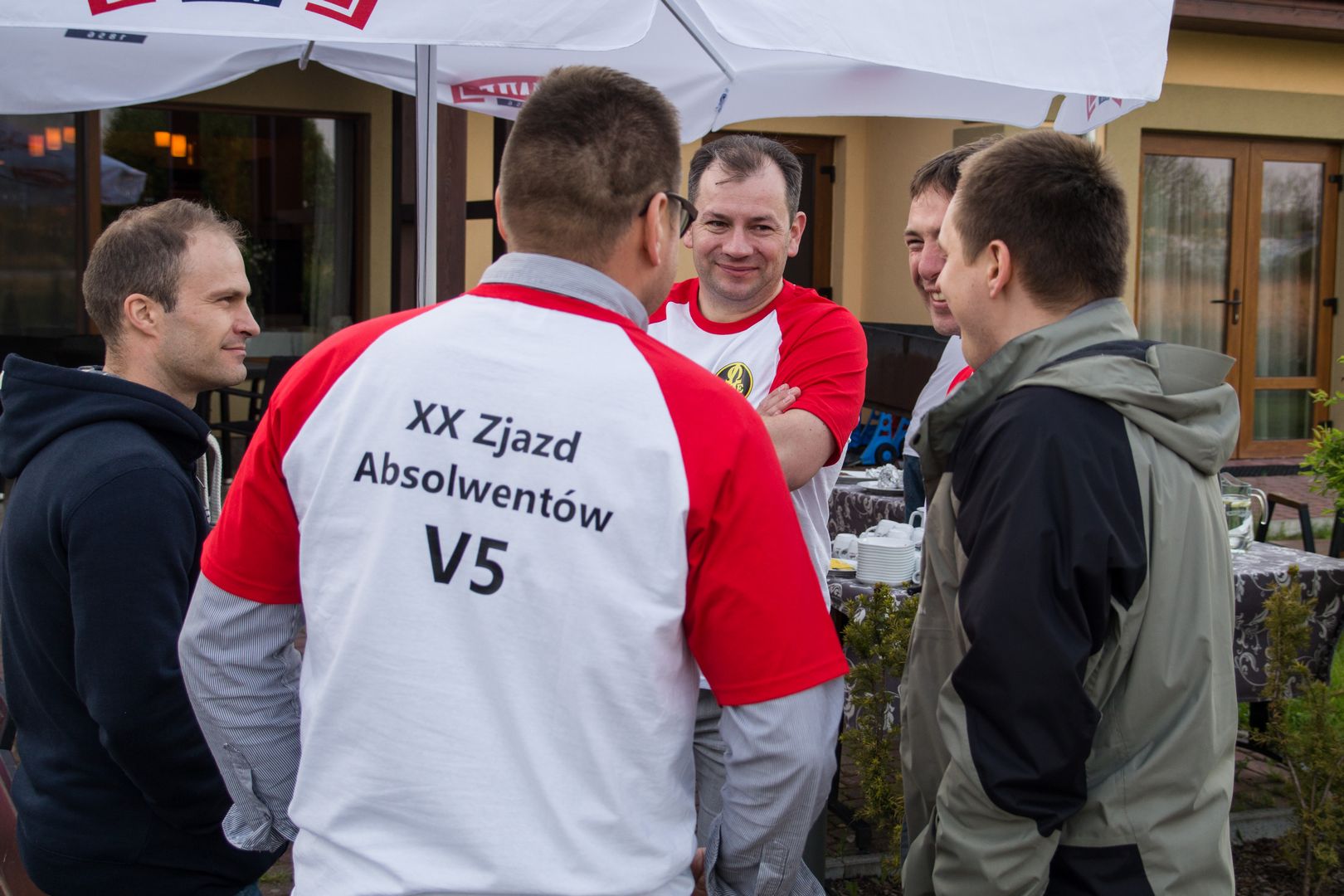 Jubileuszowy XX Zjazd Absolwentów V5 odbył się w piątek 12 maja 2017 r. w Hotelu Daglezja nad jeziorem Kórnickim. W tym roku frekwencja była rekordowa, bo zjawiło się aż 21 osób! Wśród nich byli również tacy, którzy na zjeździe pojawili się po wieloletniej przerwie. Była biesiada grillowa z ogniskiem. Jak co roku, na imprezie pojawiły się pyszne rogaliki wypiekane przez florkową Małżonkę. W tym roku każdy otrzymał prezent – pamiątkową koszulkę. 8 osób przedłużyło sobie imprezę, zostając na noc w hotelu.